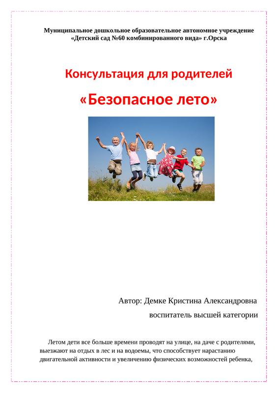Консультация для родителей "Безопасное Лето!"